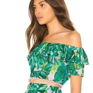 Off days remain stylish in the Alicia Top. Comprised from an off-the-shoulder neckline, fabric overlay and pom pom trim cropped hem. Dress it with the Alicia Skirt for a summery ensemble to keep the heat at bay.
