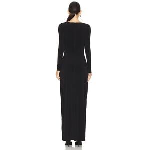 The Lovers + Friends Ariana Gown features a dramatic twist front detail, sleek long sleeves, and a floor-length silhouette. Designed in timeless black, this chic gown is perfect for formal events, galas, or elegant evening occasions.