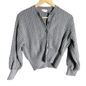 Lovers and Friends Bessie Gray Cable Knit Cardigan Wide Leg Pants 2 Piece Set XS