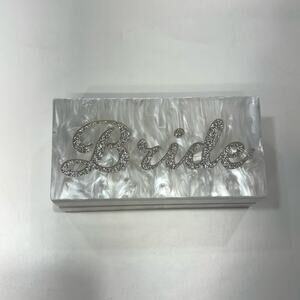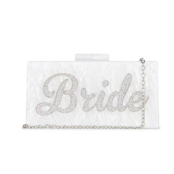 Acrylic exterior with twill lining and glitter embellished "Bride" at front