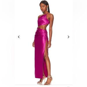 Lovers and Friends Chapman maxi dress magenta pink satin cut out party Revolve