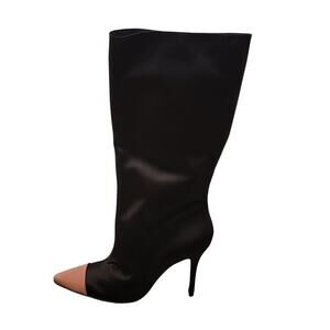 Satin textile upper with leather sole. Imported. Side zipper closure. Limited edition and sold out style with chic colorblock pointed toe. A statement piece for high fashion lovers. Approx 100mm (4") stiletto heel. Shaft height approx 330mm (13"). No box.