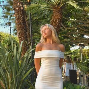 Lovers and Friends | Galleria Gown in White Off Shoulder Ponte Maxi Dress M