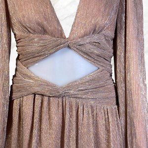 Get ready to dazzle in the Lovers and Friends Josephine Mini Dress in Rose Gold & Silver. With a hidden back zipper, front twist detail with a cut-out, metallic threading, and a lettuce hem, this dress is perfect for a nice dinner.