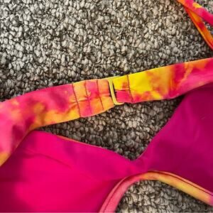 Lovers and Friends Kolbie Underwire Tie Dye Bikini Top Sunset Pink Yellow Large