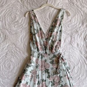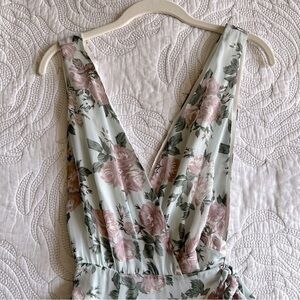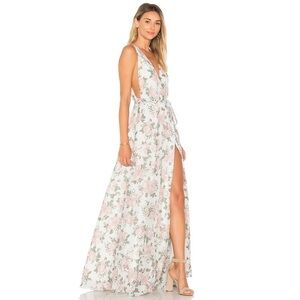 Ride along a wave of romance in the Leah Gown. Head-to-toe floral print accentuates a feminine wrap bodice with sultry leg slit in a floor grazing hem. Plunging arm openings revs up the intrigue level while a waist cinching belt keeps it ladylike.