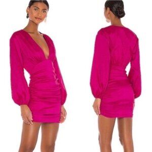 Lovers and Friends Lorenza Mini Dress Fuchsia Pink Long Sleeve V-Neck Size Xs