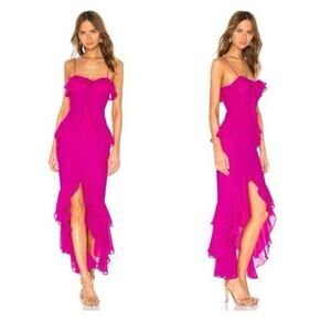 Lovers and Friends Melissa Ruffle Maxi Dress Medium Pink Magenta Glam Wedding