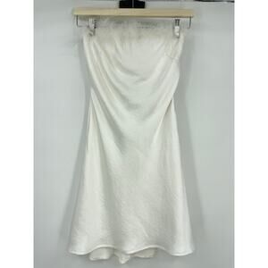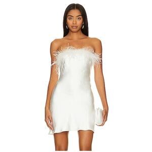 Lovers and Friends | Moira Mini Dress in White Strapless Satin Feather Trim XS