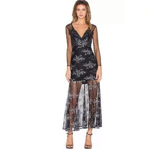 Lovers and Friends Mystic Maxi Slate Black Dress Sheer Long Sleeve Size M