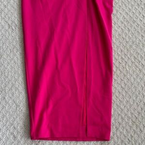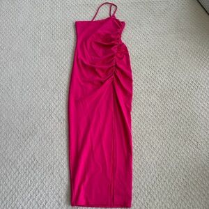 Lovers and Friends Nami One-Shoulder Maxi Dress - Wedding/Summer - Pink - Size Medium. Features a midweight jersey fabric with ruching on the left side, side seam slit, singular one shoulder accent, easy pull-on styling, and fully lined. Excellent pre-owned condition!