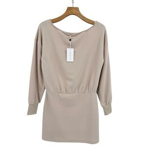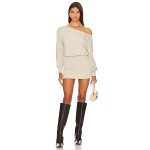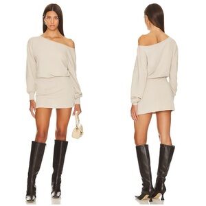 Lovers and Friends Off Shoulder Caddie Mini Sweater Dress in Sandstone Size S