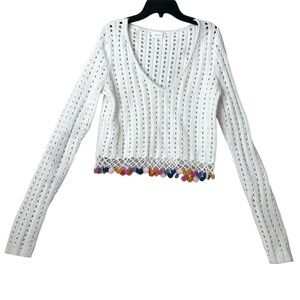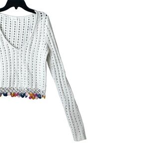 Lovers and Friends Revolve As You Are Knit Sweater Pom Pom Trim V-Neck Size L
