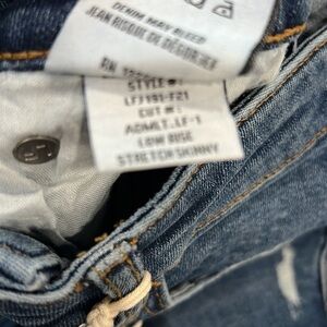 Light fading and destroyed detail. 12" at the knee narrows to 9" at the leg opening
