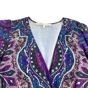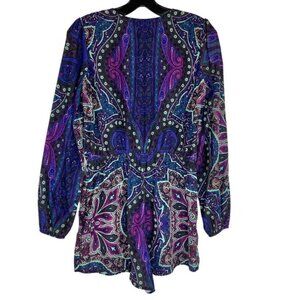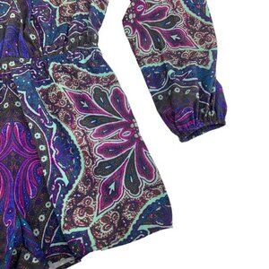 Lovers and Friends Romper. Size small. Long sleeve. Purple and blue on black. Pockets. Excellent used condition.