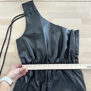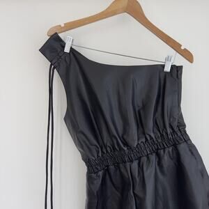 Lovers and Friends Romper Small Black Faux Leather Taina One Shoulder Mini Party