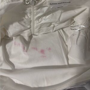 Lovers and Friends Rosalind Mini Dress. Only worn once for graduation pictures and washed it with my jersey and some of the red color bled on the back side of it and inside on the front. Pictures are included at the end for full transparency, I haven’t attempted to get the stains out, but shouldn’t be too hard.