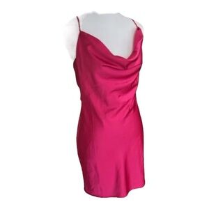 Gorgeous hot pink Taylor dress from Lovers and Friends. Satin material is lightweight and sexy. Sleeveless with a draped neck and adjustable crisscross straps in the back. Back is open with a low cut that is also draped.
