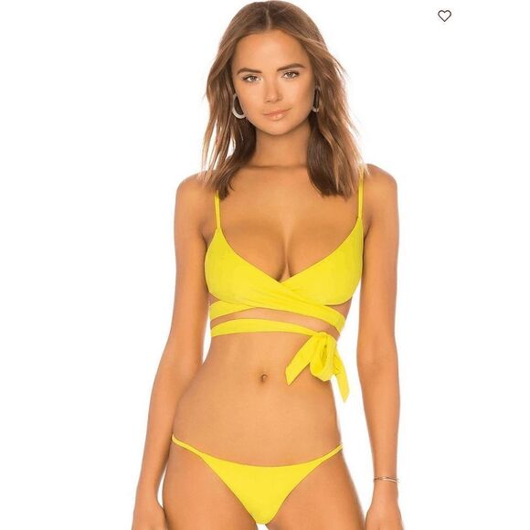 82% polyamide, 18% elastane. Hand wash cold. Wraparound front with tie closure. Adjustable shoulder straps. Item not sold as a set. Imported. Revolve Style No. LOVF-WX304. Manufacturer Style No. LFX151 U18.