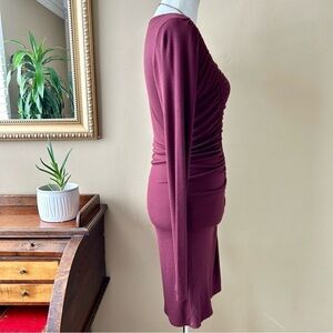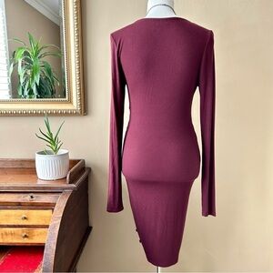Lovers and Friends Venetian Dress Ribbed Burgundy Bodycon Long Sleeve Ruched M