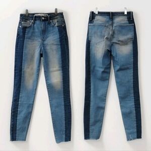 Lovers and Friends Womens Size 26 Mason Two Tone Blue Denim Raw Hem Jeans