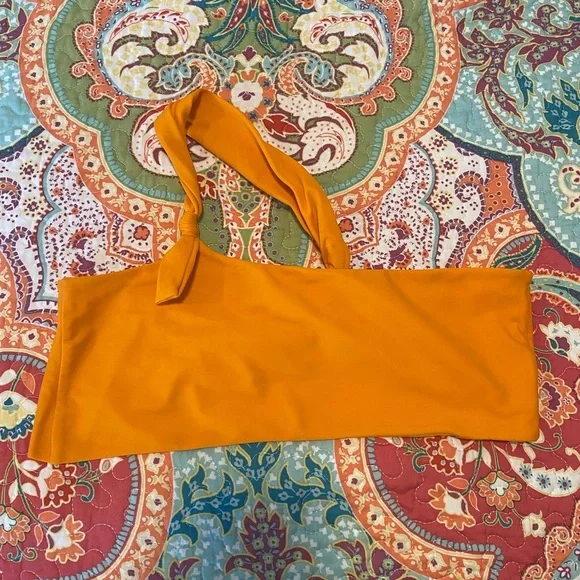 Lovers and Friends orange one shoulder strap bikini top size S EUC