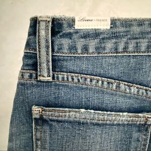 Lovers + Friends Distressed Alex Mini Denim Skirt. Distressed areas throughout. Raw cut hem. Sold at Revolve. Size 24. Waist 14" Length 10". *NWOT - NEW without Tags.