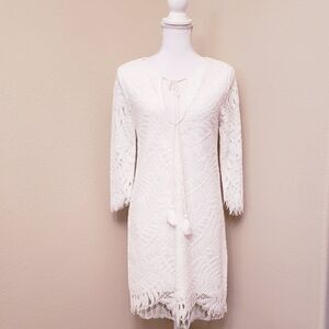 Exude major confidence in the Lovers + Friends Marlie Mini Dress. Eyelet lace fabric adorns this mini for romantic-chic appeal and is effortlessly finished with a tassel tie accent.