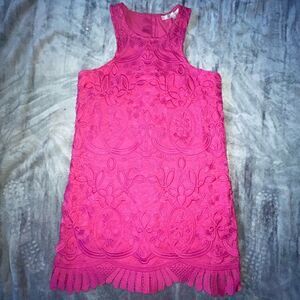 Lovers + Friends Pink Lace Fitted Dress w/ Exposed Back Zipper