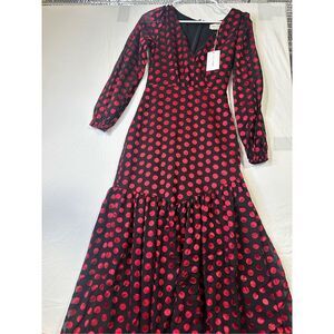 NWT Lovers and Friends Augustus full maxi dress Gown – Black & Red Polka Dots, Size XXS