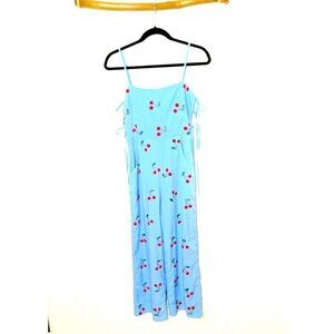 Lovers and Friends Jumpsuit Size Small Blue Red Analee Cherries Beaded Side Ties