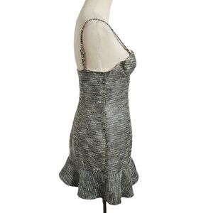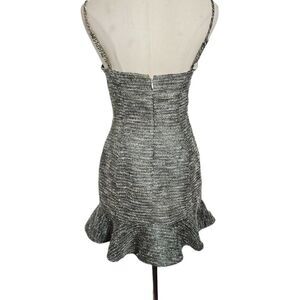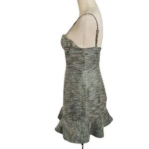This would be a perfect dress for a holiday party. Green and white with some gold sparkle. Fully lined with molded cups and adjustable straps. Back zip with hook closure. There are 2