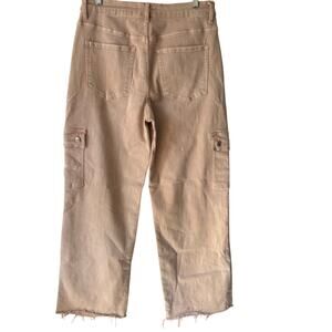 Lovervet by Vervet Tan Cargo Wide Leg Raw Hem Jeans Size 32/15 Inseam 31"