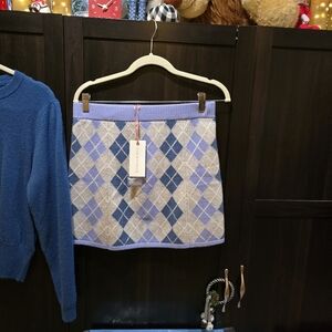 with Matching Loveshackfancy Marseille Light Blue Multi Argyle Skirt