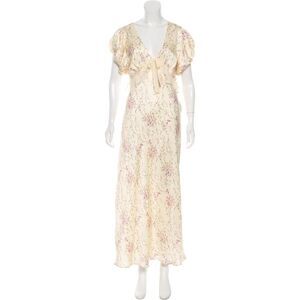 Loveshackfancy 100% Silk Slip Bias Vintage Floral Lillian Ruffle Maxi Dress sz 2