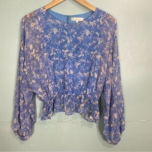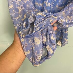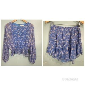 Loveshackfancy 2 Pice Top & Skirt Silk Floral Blue Sz S