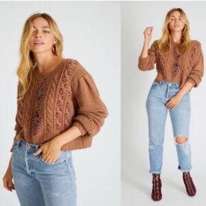 Beautiful rich brown cable knit sweater from loveshackfancy. Floral embroidery detail. In great, like new condition