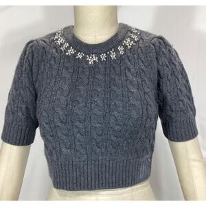 Loveshackfancy 'Chapelle' Crop Sweater Size S: cable knit fabric with crystal and beaded trim.