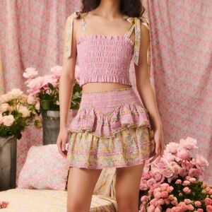 Loveshackfancy 'Corbin' Pink Floral Print Liberty Fabric Cropped Top Size M
