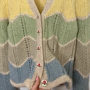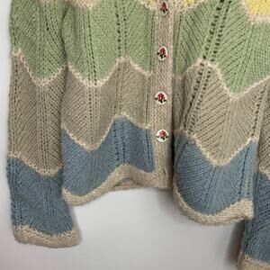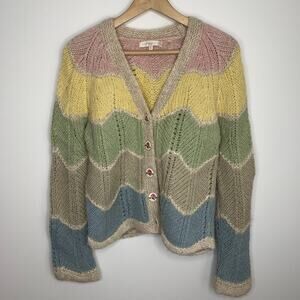 Loveshackfancy Deena Alpaca Wool Rainbow Pastel Zig Zag Cardigan Womens Small