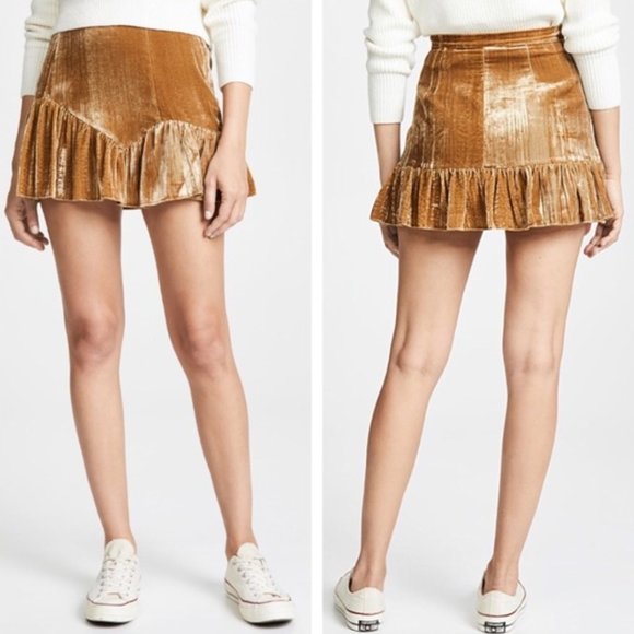 Loveshackfancy Eliza Gold Velvet Mini Skirt 6