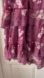 Elegant purple maxi skirt with floral pattern and lace details. Features a stylish slit for added flair. The slit was hand stitched down to the second ruffle for an event, closed until about 20” down from the top waist. If you purchase it and want the stitches undone I can open the slit back up before shipping.