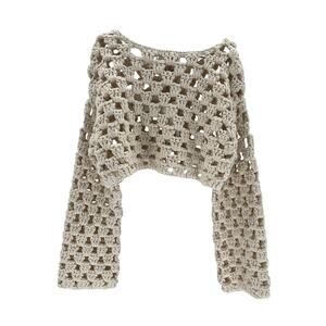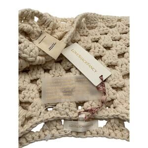 Loveshackfancy 'Keely' Beige Cotton Crochet Crop Pullover Sweater Size XS