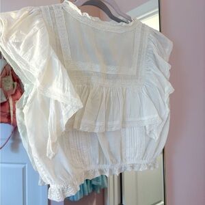 Victorian inspired top, cropped button front blouse with lace, pintuck and ruffled details.