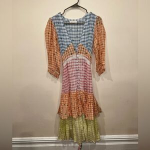 Loveshackfancy Plaid Midi Ollie Rosebud Checked Plaid Midi Dress Size 2