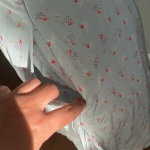 100% Silk- Soft blue with pink, white, purple, and green floral print.