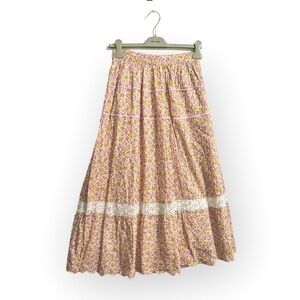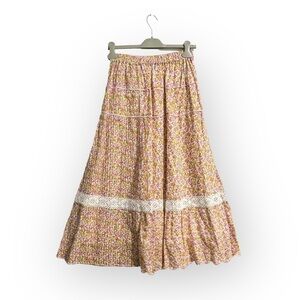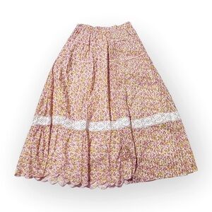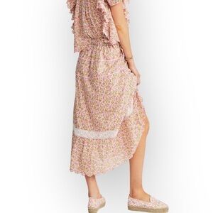 Loveshackfancy Saratoga Floral Cotton Midi Skirt, Size XS, Fruity punch, Pink