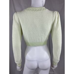 Loveshackfancy 'Twain' Green Cotton Crop Cardigan Size XS: pearlescent front button closure, boucl� knit fabric with metallic threads, measurements: 15 inch bust x 15 inch length.
