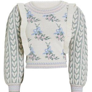 Loveshackfancy Warwick knit sweater floral ruffle hearts XS