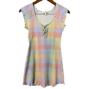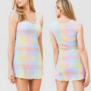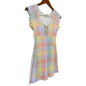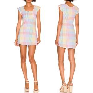 Loveshackfancy Zoie Mini Dress Small Rainbow Pastel Gingham Colorful Coquette